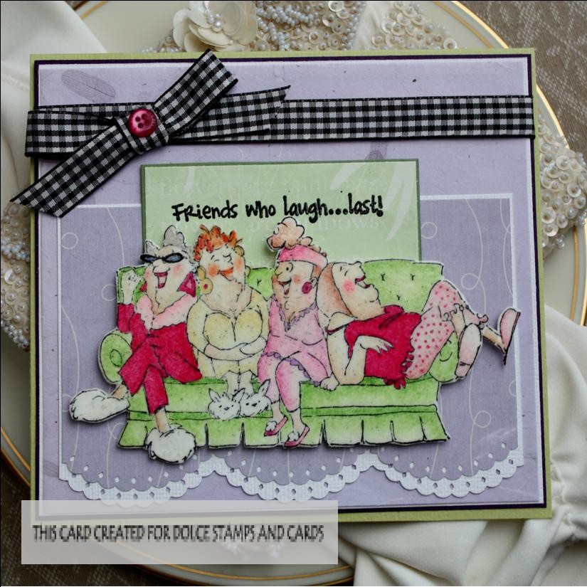 Purple happens to be one of my favorite colors, so imagine my delight when Sandra and Betsy, owners of Dolce Stamps and Cards, sent me this awesome iris image by My Heart Stamps 4 You. Copic markers are pretty much my go to coloring medium, although I do enjoy watercoloring with reinkers as well. I just love how well the Copic markers blend colors, especially on flowers and this beautiful butterfly also by My Heart Stamps 4 You. I also favor polkadots and stripes in many of my designs, and I liked how well the striped designer paper accented the beautiful irises.